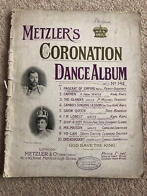 Meanwhile in London, light music publisher Metzler published a book of tunes around this time, which included at least one piece composed for Edward’s Coronation: Metzler’s Coronation Dance Album. The precise date is uncertain: Metzler gives 1911 in Roman numerals, and (1909) in Arabic. Very helpful, Mr Metzler!