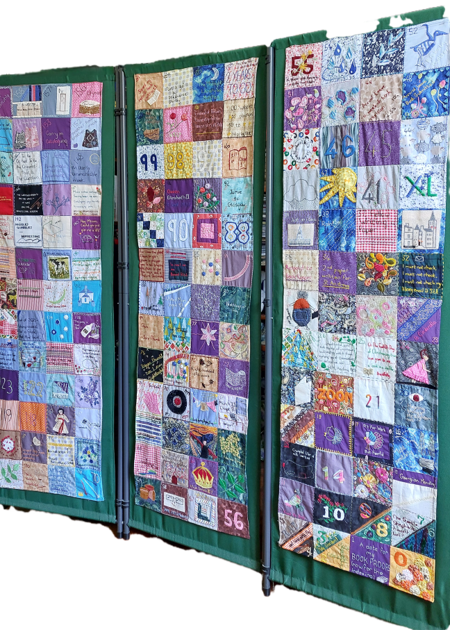 Okay, I promised I would be more forward-looking, now that I’m no longer a librarian. I’m not going back on my word, but I just wanted to share the stitched countdown project that I have completed over the past three years. My purpose was to count down the weeks until I would retire from librarianship. To that end, I sewed one square a week, and joined them up to make three panels for the folding screen that lives beside my desk. Sometimes they’re topical, sometimes reflective, and sometimes (when I got behind with myself), it’s just a number. (Those were at least good practice at sewing satin stitch. I only really took up embroidery during the pandemic lockdown – I’m not an expert.)