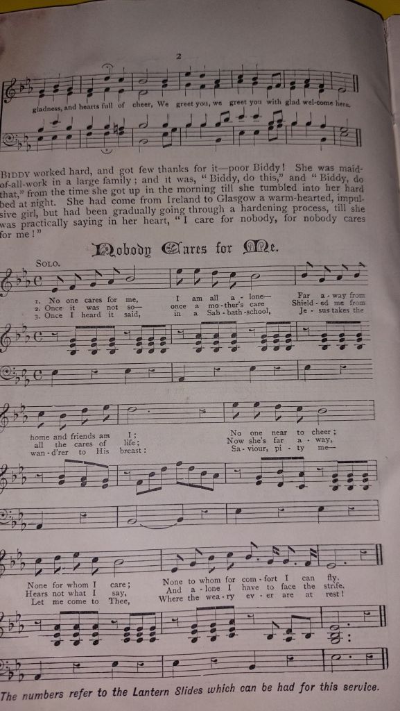 Whatever, the narrative and the songs were in a wee booklet, and that was your Service of Song. You bought multiple copies – they were cheap! The event itself was advertised as a service of song.