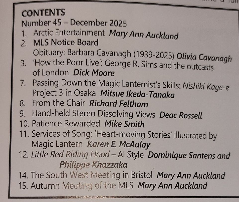 This morning saw the arrival of the latest issue of The Magic Lantern (no.45, December 2025) containing my article, ‘”Heart-Moving Stories” Illustrated by Magic Lantern’. I’m grateful to have had this opportunity to share a favourite bit of research, to which I alluded briefly in my recent monograph.