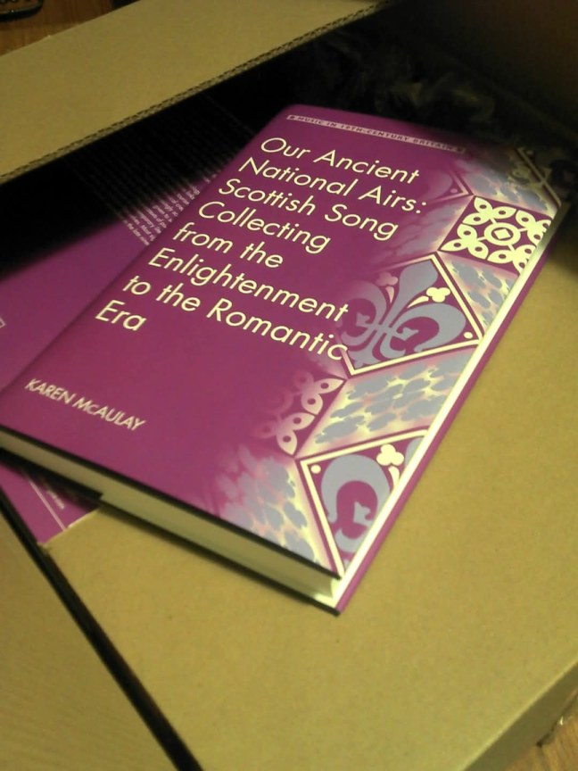 The launch had a saxophone ensemble playing arrangements of songs that Alexander Campbell had collected for his two Albyn’s Anthology volumes (1816, 1818). Robyn Stapleton sang with a piano trio. And my friend clarsach player Karen Marshalsay played a tune she had written for me. It was a great celebration, and another milestone for me, the woman who never submitted her first doctoral thesis in the mid 1980s, but had completed another one a quarter of a century later.