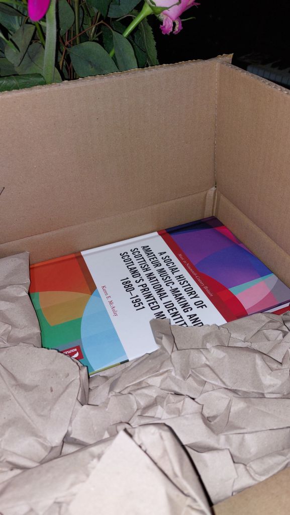 But this one? All my own, unsupervised work, arising originally from the thought that someone really ought to write a book about the music published by Scottish publishers in the late Victorian era and the early twentieth century. No-one had written one, so I researched and wrote it myself. I was grateful for my peer-reviewers’ feedback on the first draft, and I know that the final product benefited from the subsequent edits that I made during my Ketelbey Fellowship at St Andrews.
