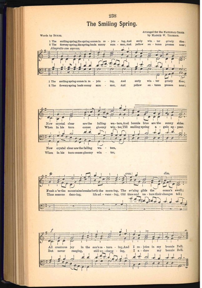 The smiling spring, words by Burns, arr. by MWT for The National Choir [Addendum: Vol.1 p.238 (Parlane, 1891)]