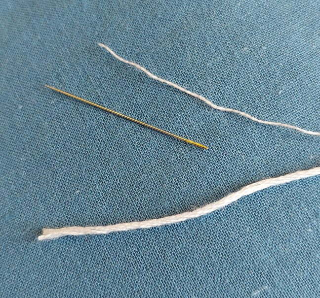 Moreover, Miss Letitia Higgin and Lady Marian Alford didn’t think to tell me that size 5 needles are larger than size 9. I suspect I may have been using the right size for embroidery all along (without knowing a scooby about sizes and numbers), but now I reached for the tiniest size needle, and spent far longer than was reasonable, trying to thread one strand of thread into the eye of a needle that I couldn’t even see. Ughh! I blamed the eye (my own) that can’t even read with glasses. Eventually I used a needle threader. The thread broke. I did get dressmaking thread through the eye. And I bent the needle before getting the single strand of embroidery floss through the eye. The eye of the needle was ludicrously, but appropriately small for such a tiny wee needle.